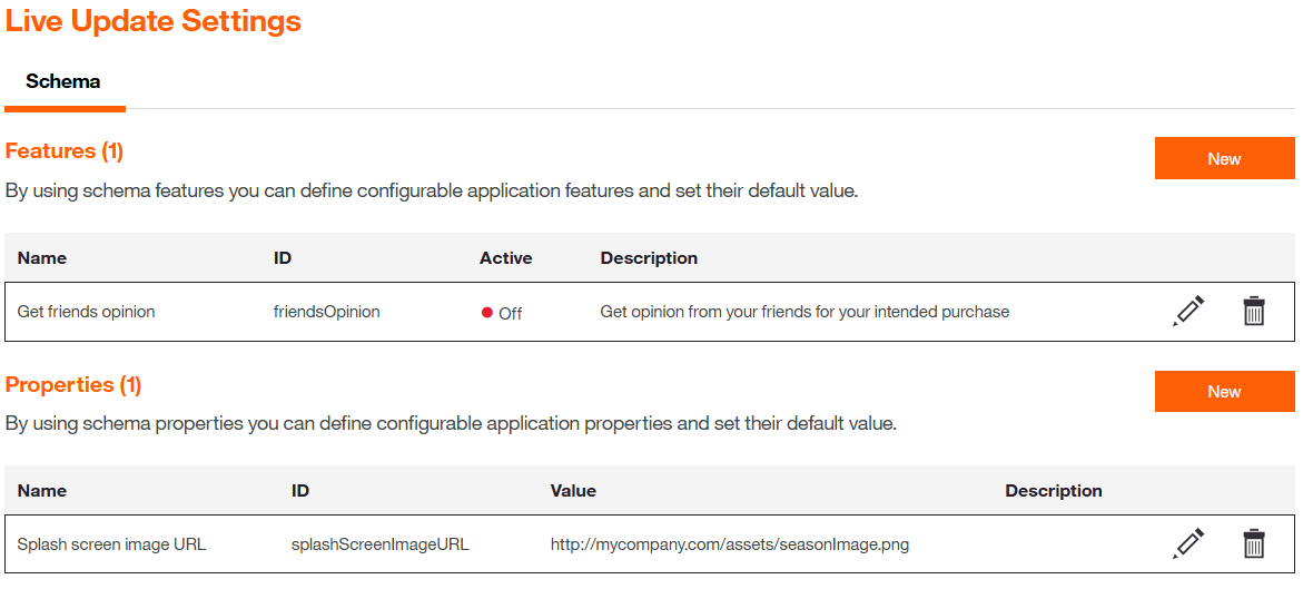 - Features - Using features you can define configurable application features and set their default values.